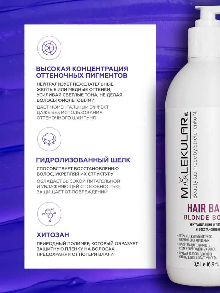 HYDROLYZED KERATIN; Chitosan Succinamide; Acid Violet 43; Hydrolyzed Silk Protein; бальзам оттеночный; бальзам от желтизны; фиолетовый бальзам